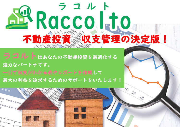 Raccoltoは不動産投資で重要なインカムゲイン(家賃収入からの利益)とキャピタルゲイン(売買での利益)を把握できる、収支管理サービスです。